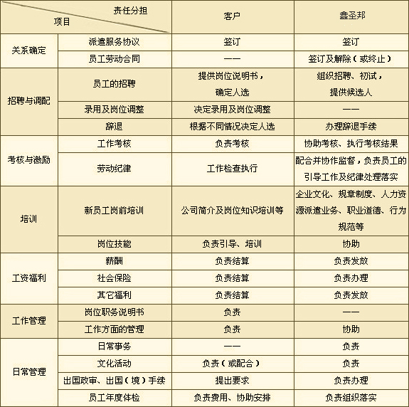 注:根据客户的不同需求,上述合作模式可根据派遣协议的约定进行相应的调整或者补充。
